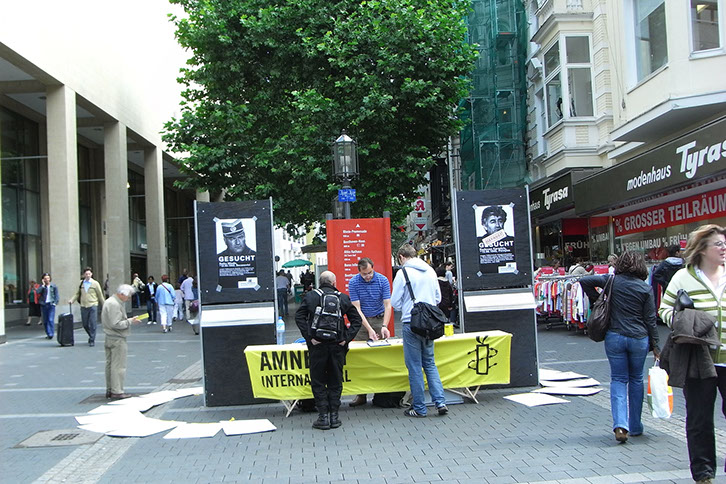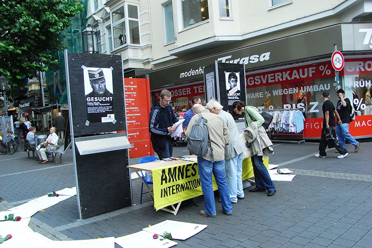 Infostand und Aktion in der Bonner Innenstadt in Zusammenarbeit mit dem Amnesty-Bezirk Bonn-Koblenz.
