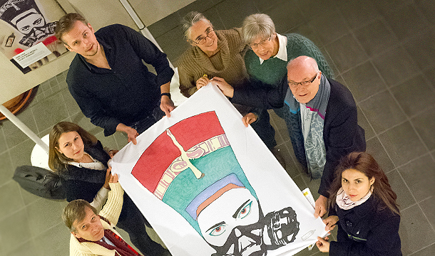 65. Tag der Menschenrechte, 10. Dezember 2013: Ausstellungseröffnung zum Thema „Menschenrechte in Ägypten“ im Foyer des Bad Honnefer Rathauses. Die Bad Honnefer Amnesty-Gruppe zeigt Protest-Grafittis der unterdrückten Bevölkerung zu Übergriffen durch staatliche Gewalt. Foto: Frank Homann