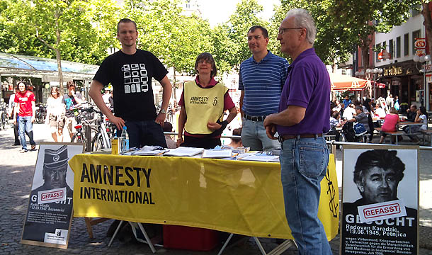 Aktion der Bad Honnefer Gruppe mit dem Bonner Amnesty-Bezirk zum 15. Jahrestag des Massakers von Srebrenica, Juli 2010.