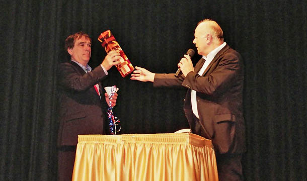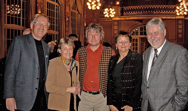 Jürgen Becker für Amnesty im Kurhaus Bad Honnef - anlässlich des Internationalen Tages der Menschenrechte, 10.12.2003. Hier zusammen mit Bürgermeister a.D. Peter Brassel.