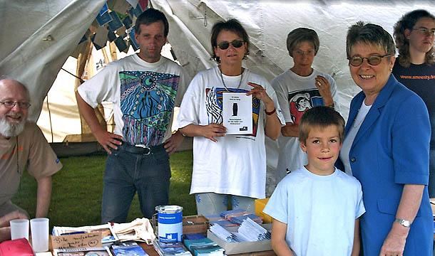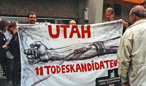 Aktion der Bad Honnefer Gruppe gegen die Todesstrafe im US-Bundesstaat Utah auf der Amnesty Jahresversammlung, Juni 1999.