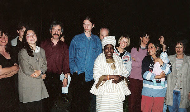 Vera Chirwa, malawische Rechtsanwältin und "Adoptions"-Fall der Bad Honnefer ai-Gruppe ist frei. Ai-Bad Honnef heißt sie im privaten Rahmen willkommen, Juli 1995.