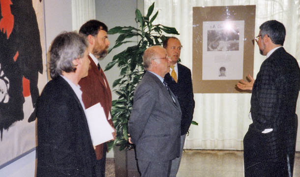 Ausstellung der Amnesty-Gruppe Bad Honnef in den Räumen der AOK Bonn. Als besonderer Gast der damalige Bundesarbeitsminister Norbert Blüm.