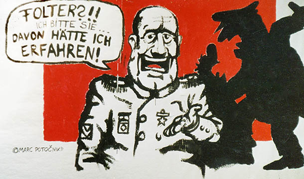 Anti-Folter-Ausstellung im Brückenturm zu Erpel, September 2011 in Zusammenarbeit mit Aktion2T.