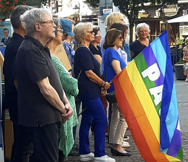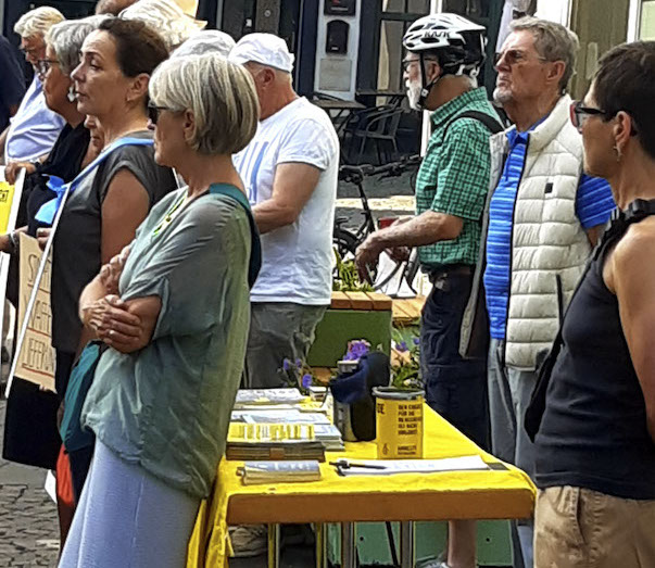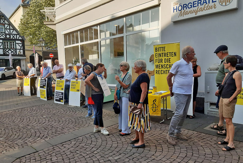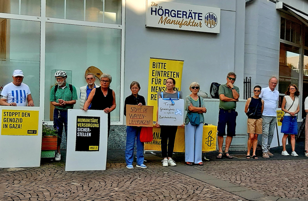 Im Juni 2025 führte unsere Amnesty Gruppe in der Bad Honnefer Innenstadt eine Mahnwache zur katastrophalen Menschenrechtssituation im Gaza-Streifen durch.